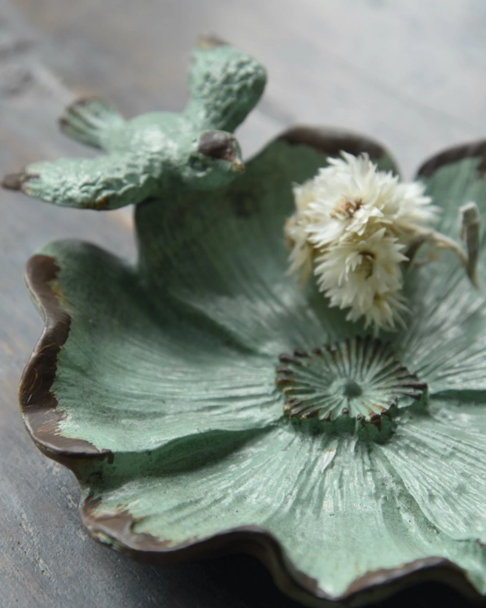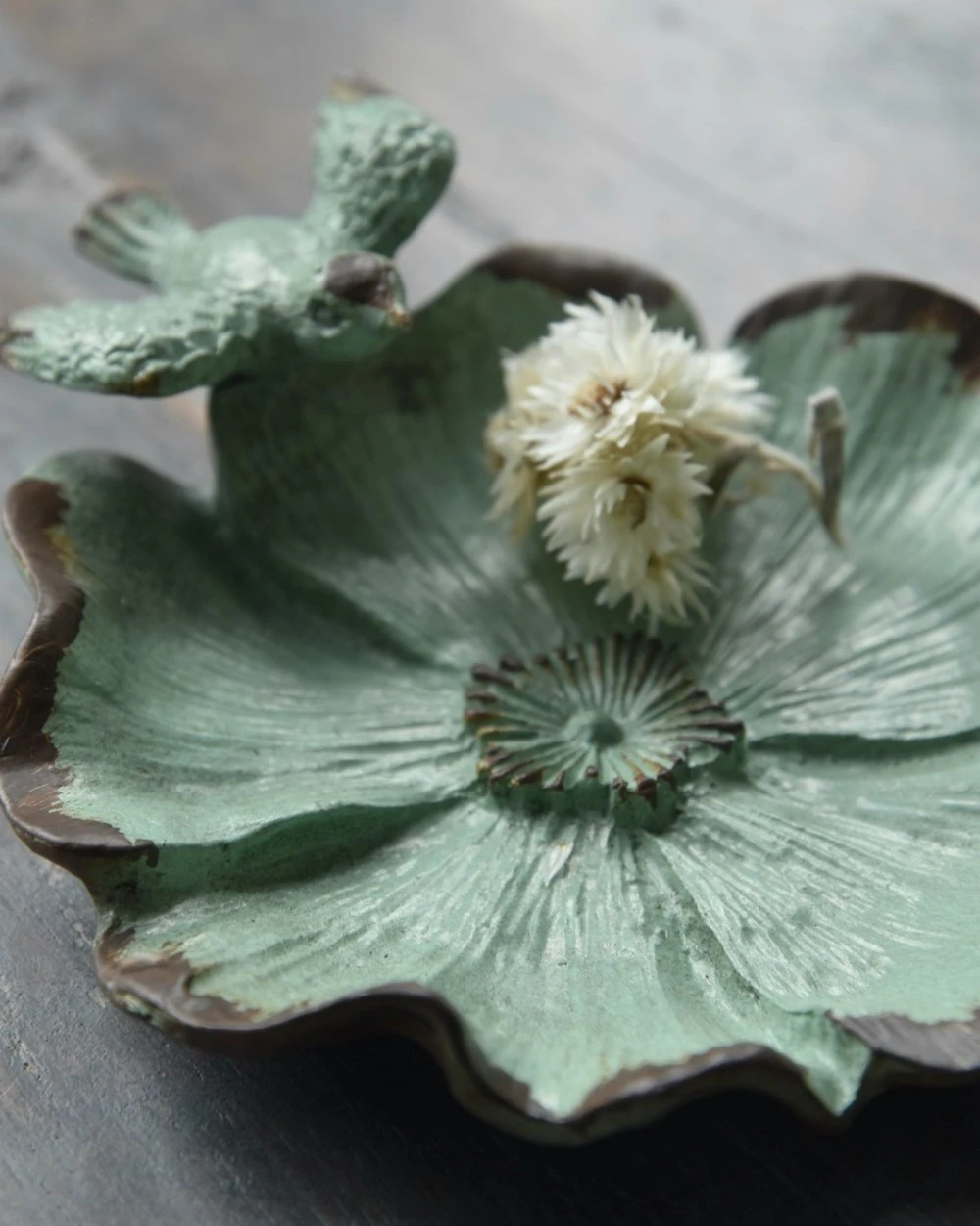 Bloemvorm Antiek Turkoois Schaaltje Met Vogeltje
