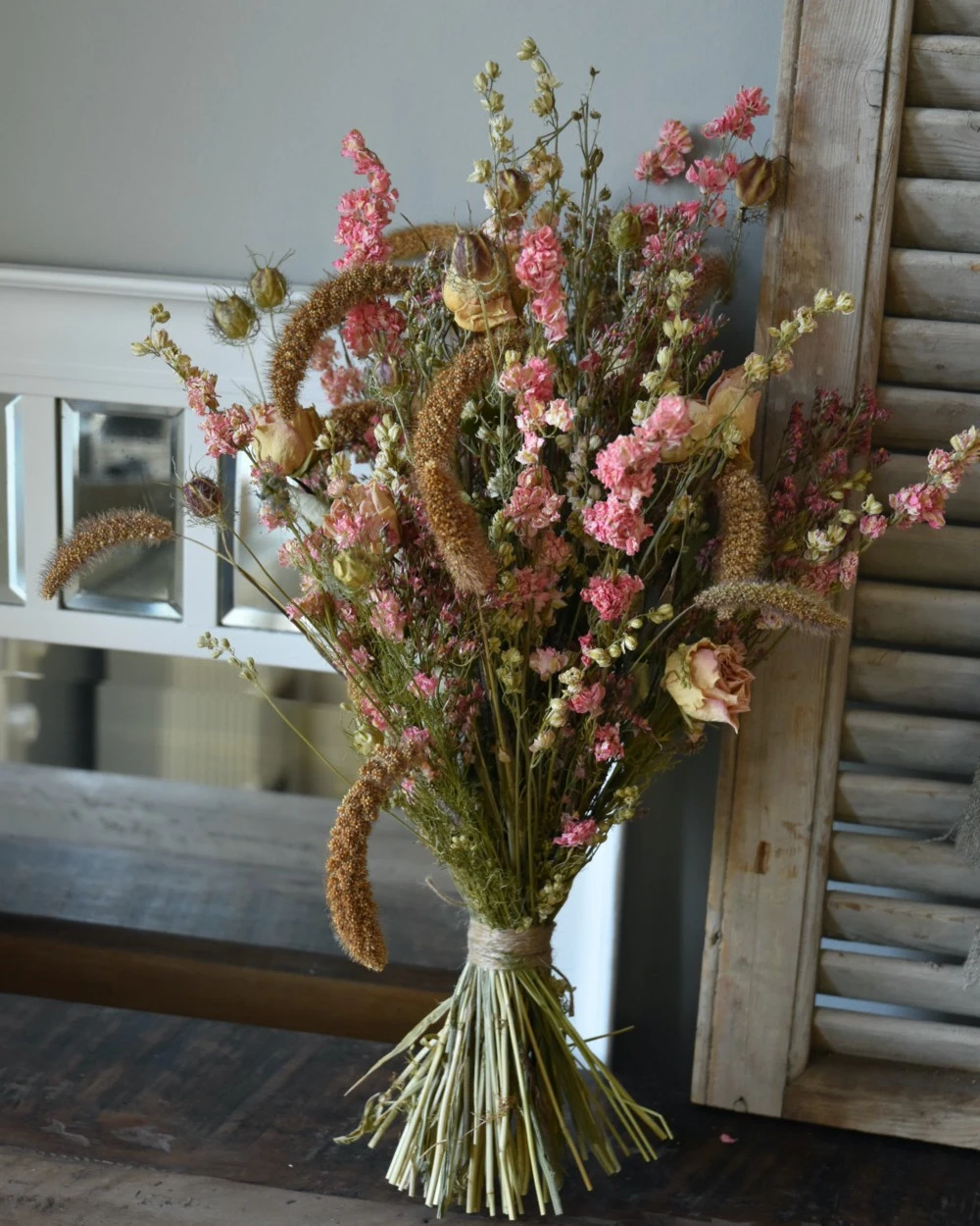 Droogbloemen houden niet van direct zonlicht, zet ze liever op een iets donkerdere plek.