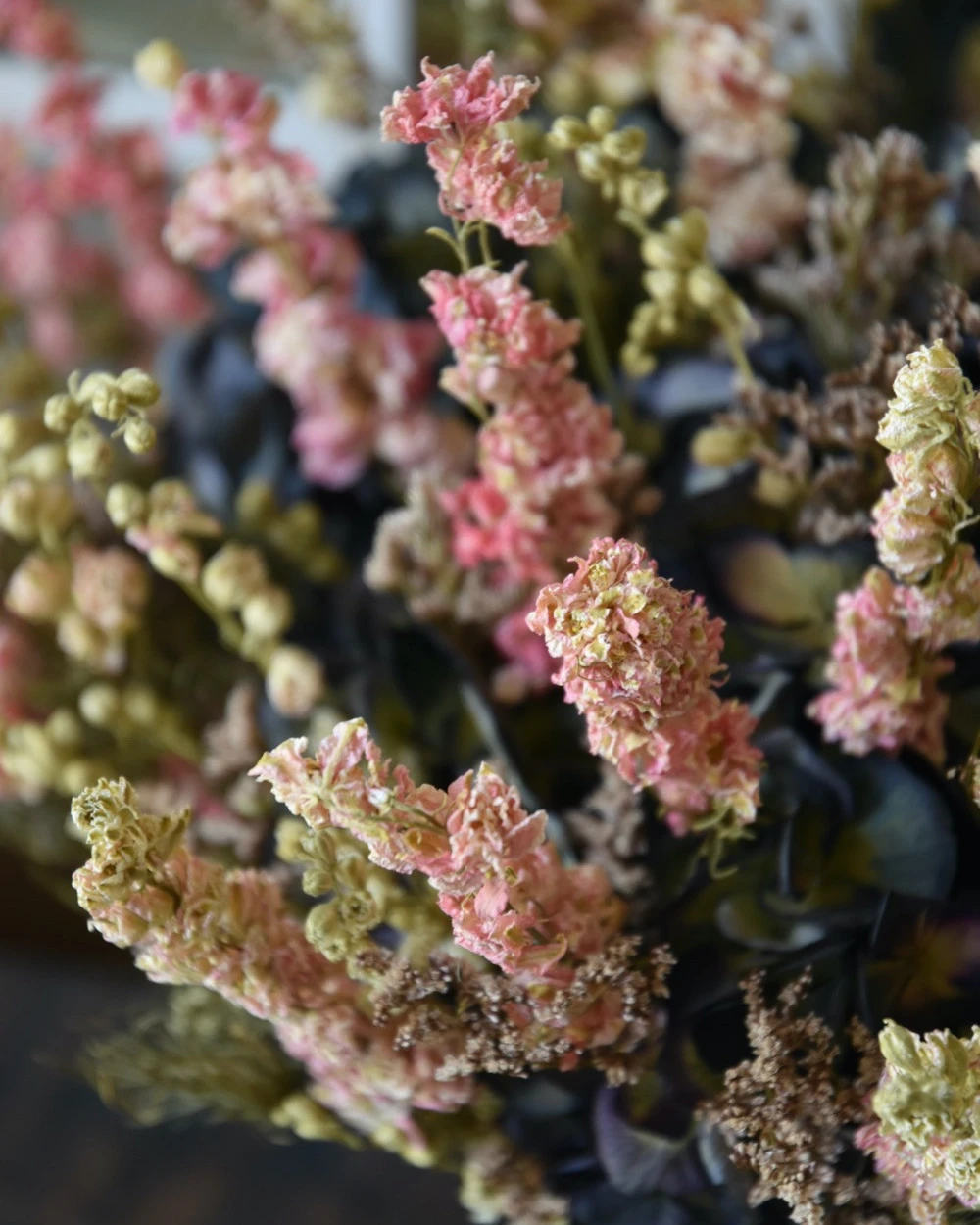 U kunt droogbloemen het beste uit de zon op een niet al te lichte plek zetten.Â