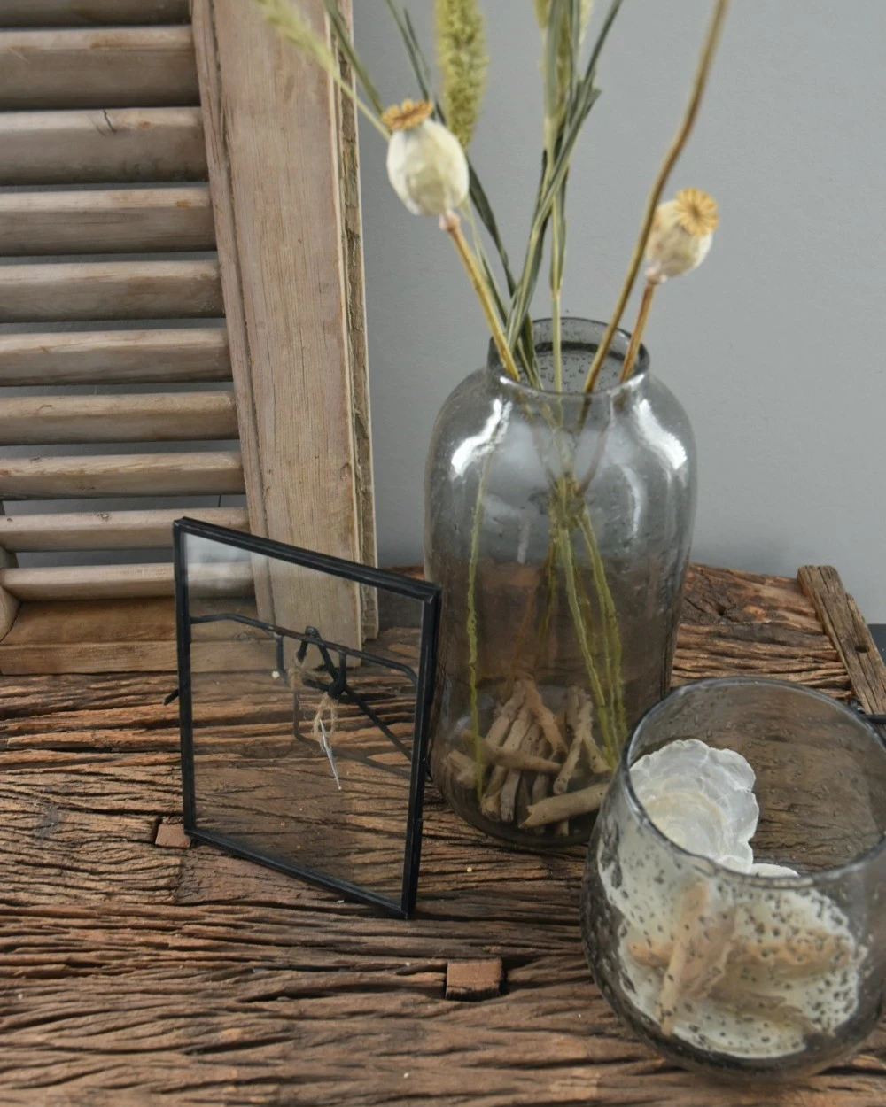 Fotolijst met standaard, IB Laursen per stuk. Deze mooie stijlvolle fotolijst heeft een iets verouderde metalen frame met twee lagen glas. U kunt de lijst gebruiken voor een mooie en dierbare foto, maar een mooie veer of geperste bloemen zijn ook heel geschikt.Â