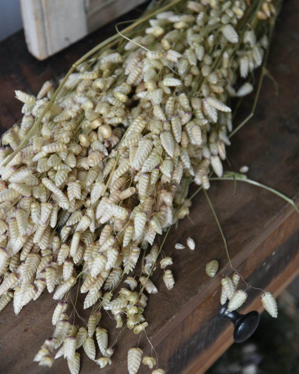 Briza Maxima gedroogd groot Trilgras. Deze droogbloemen is een siergras, Bevertjes of groot trilgras. Ze staan prachtig solide in een vaas, maar doen het ook goed in een droogbloem boeket. De graskjes hebben een mooie vorm en zitten met meerdere aan een tak.Â