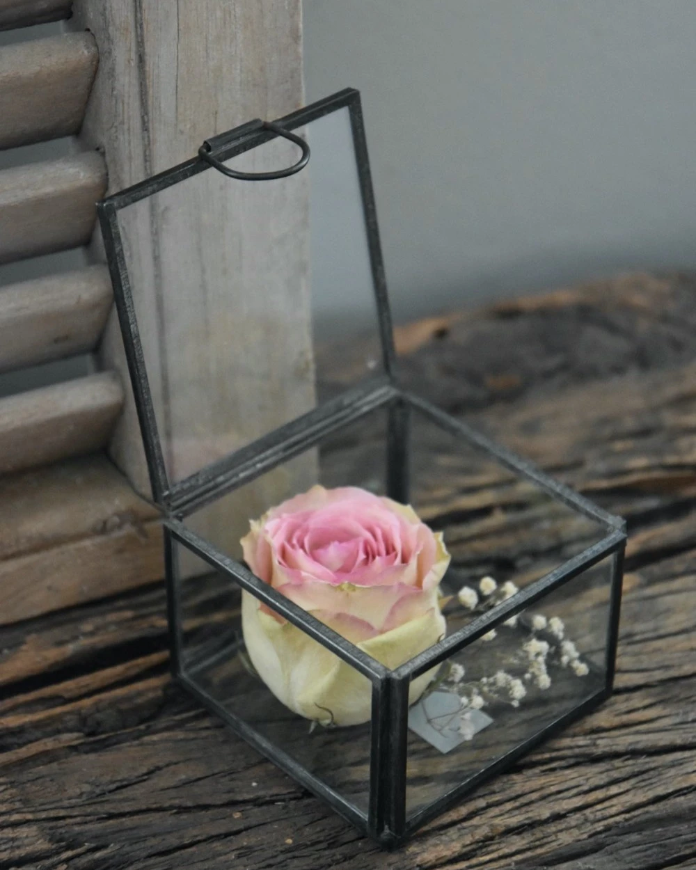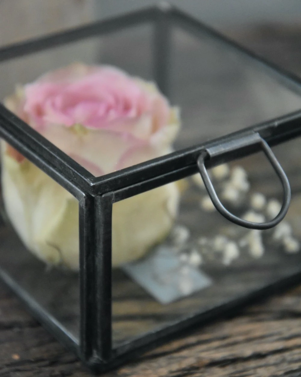 Glazen kistje vierkant, IB Laursen. Dit leuke kleine kistje is van metaal gemaakt en ingelegd met glazen wanden, bodem en deksel. Het kistje heeft een scharnierdeksel met een rond oog om hem mee te openen. U kunt het kistje naar wens vullen met bv gevriesdroogde bloemen een mooi sierraad of iets anders waar u veel waarde aan hecht om het zo een bijzonder plekje te geven. Doordat er met de hand het glas is ingelegd kunnen er kleine oneffenheden in het kistje zijn, dit hoort bij de charme van het product.
