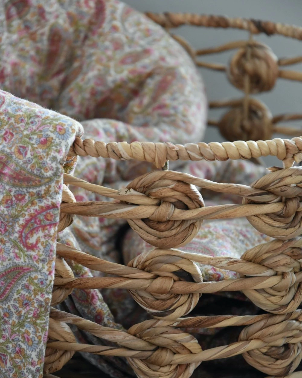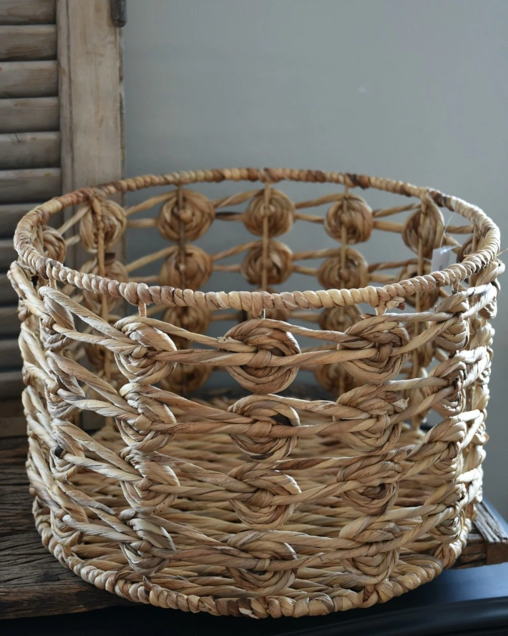 Handgemaakte mand met cirkel patroon, groot per stuk. Deze prachtige mand is in een rond model met patroon van cirkels/rozen die de gehele zijkant herhaald. Het mooie vakwerk van deze bijzondere vlecht patronen maakt de mand tot een prachtig geheel. De mand is stevig en kan heel divers worden gebruikt of gedecoreerd. bv in de woonkamer voor een lekkere plaid/quilt en wat kussens, als wasmand…… Dit model is ook in een kleinere maat verkrijgbaar.