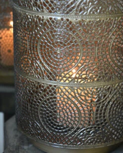 Windlicht Met Hengsel Van Metaal Met Geweven Gaatjes Patroon