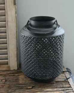 Groot Metalen Windlicht Met Weefpatroon En Hengsel, Vierkant