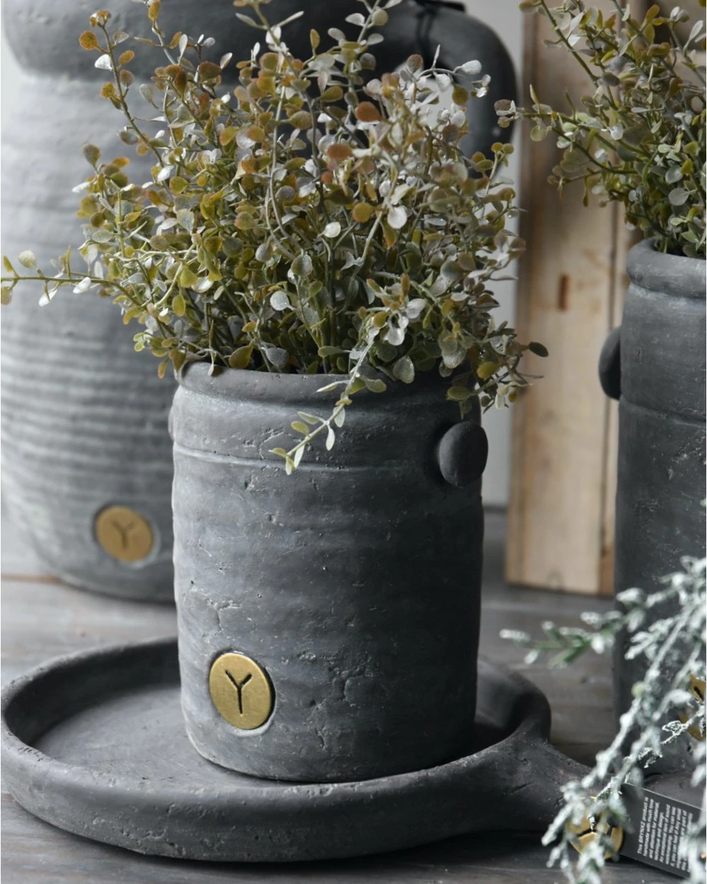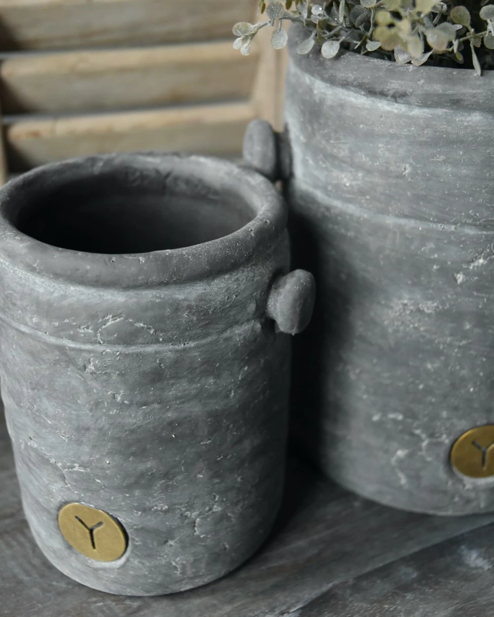 Pot Met Twee Dop Oortjes Vintage Grijs Klein, Brynxz