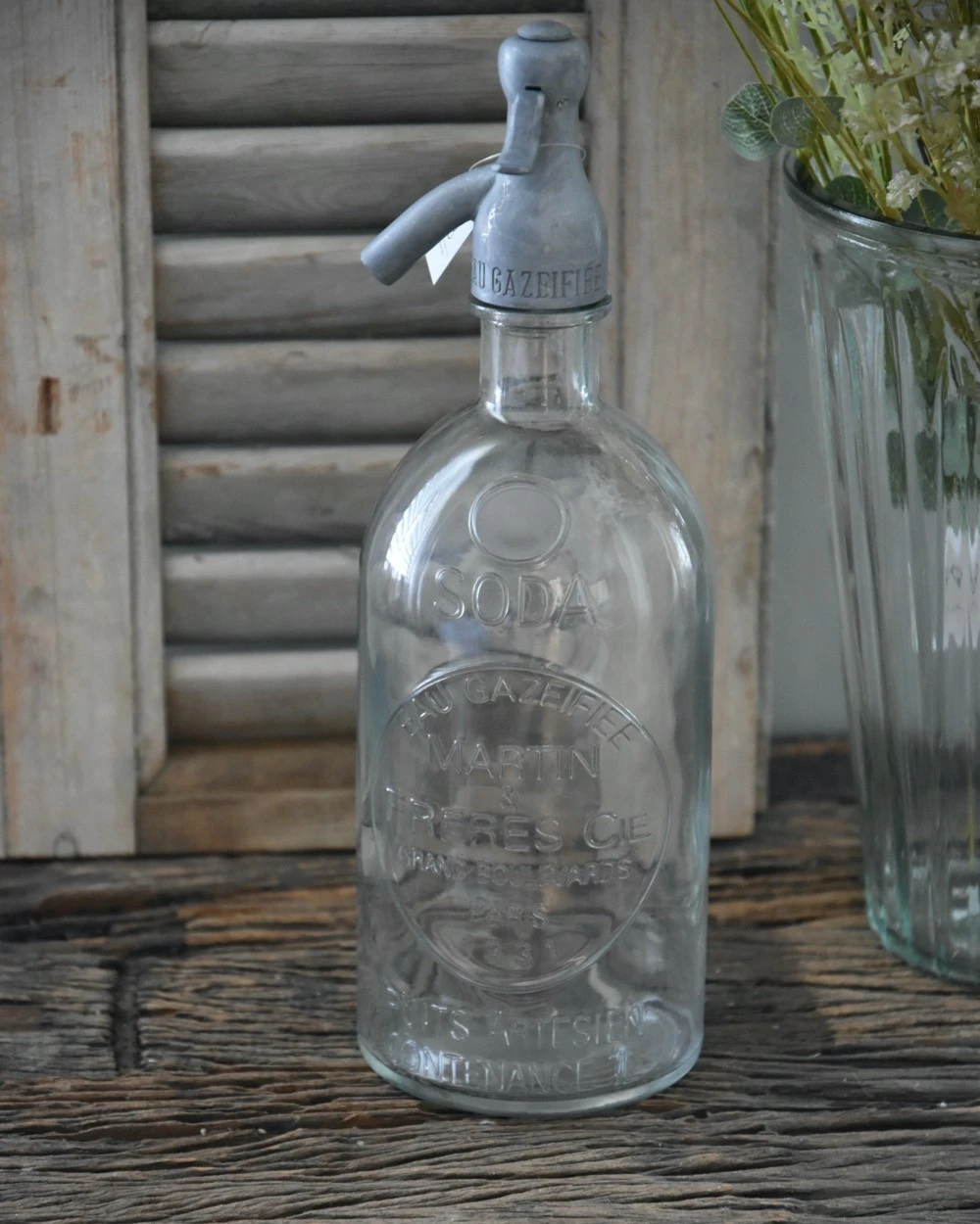 Shaffon fles, IB Laursen per stuk. Deze leuke decoratieve fles is van transparant glas met een mooie glazen opdruk aan de voorzijde, het zinken bovenstuk maakt de shaffon fles compleet. U kunt de fles leuk decoreren in de keuken op een plank of in de vitrinekast. De fles is nieuw en van het Deense merk IB Laursen.