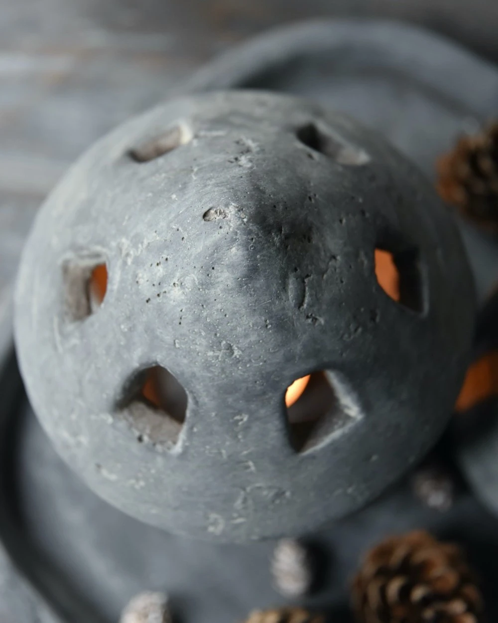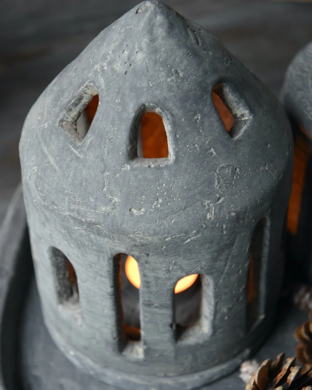 Theelicht Houder Huis Rond Vintage Grijs Groot, Brynxz