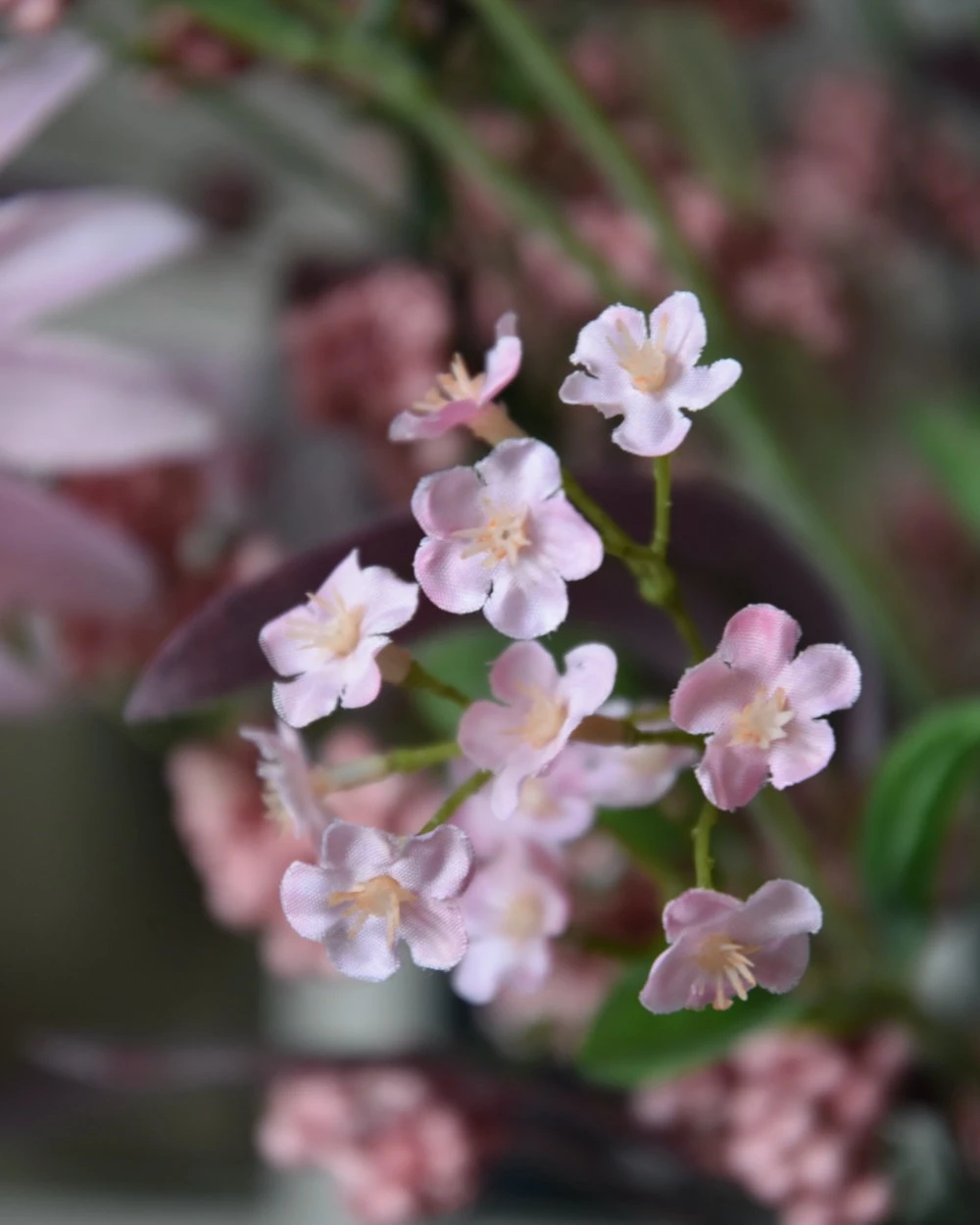 Zijde boeket in het roze met Bessen, Vergeet Me Nietje en Echinacea. Dit prachtige lange boeket van zijde/kunst bloemen is met ton sur ton roze bloemen opgebonden. In het boeket zitten roze bessen, roze Echinacea/Zonnehoed, roze Vergeet Me Nietjes en diep roze warme Eucalyptus. Het boeket heeft ook lange stelen die eventueel nog op maat geknipt/gebogen kunnen worden. U kunt het boeket zo op een lage vaas of kan zetten en genieten van deze mooie kwaliteit bloemen (meeste zijn van het merk Brynxz).