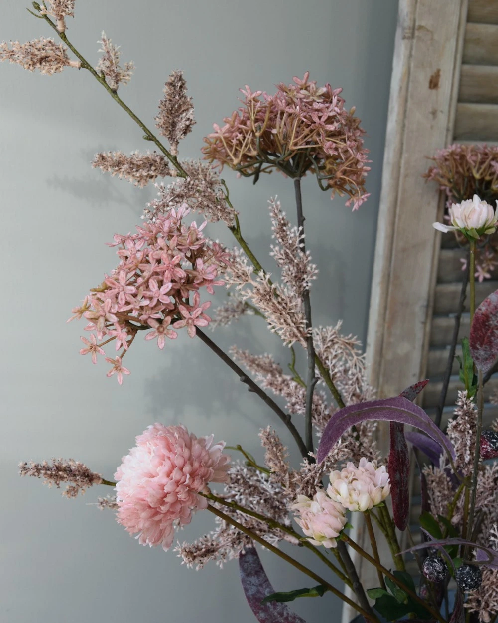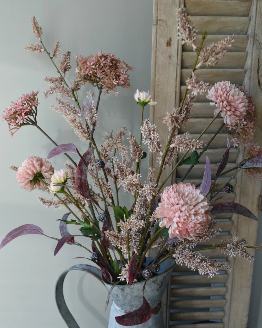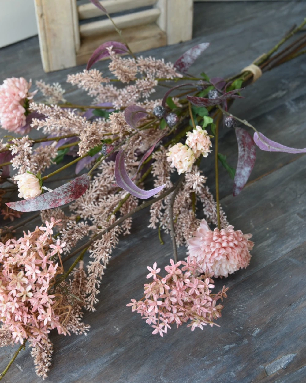 Zijde Brynxz Pluk Boeket In Roze Met Vlier En Wilgen Bloesem, Eucalyptus En Chrysanten