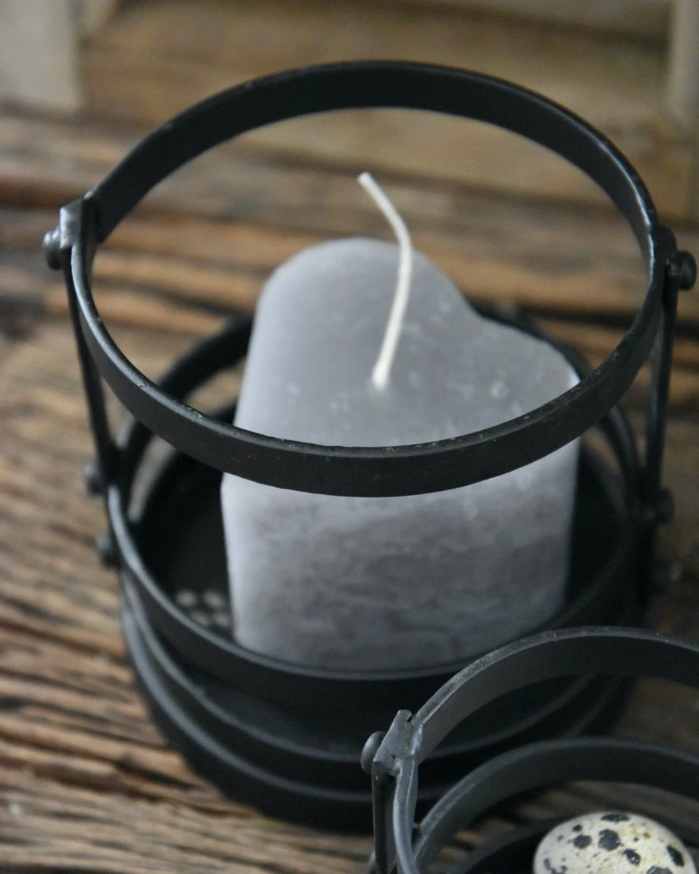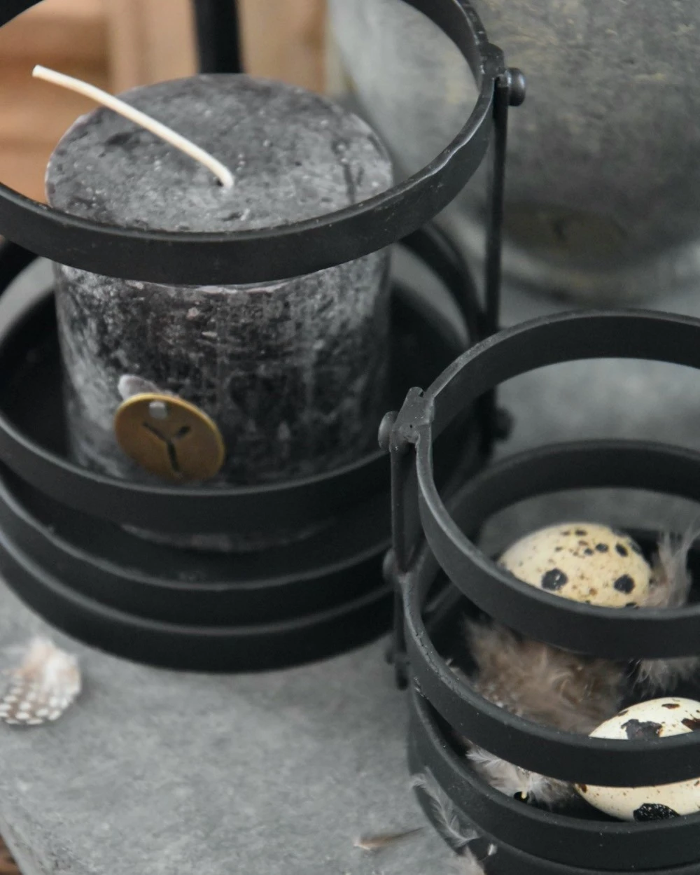 Zwart metalen houder Atmosphere groot, Brynxz per stuk. Deze leuke houder voor bv een waxinelichtje in van metaal gemaakt. Het zwarte lijnenspel en de bevestigingspunten zien er stijlvol en iets stoer uit. U kunt de houder gebruiken met een kaarsje of wat leuke eitjes, mos en bolletjes, wat droogbloemetjes…….. kortom een heel divers item. De houder is ook in een maat kleiner verkrijgbaar.Â